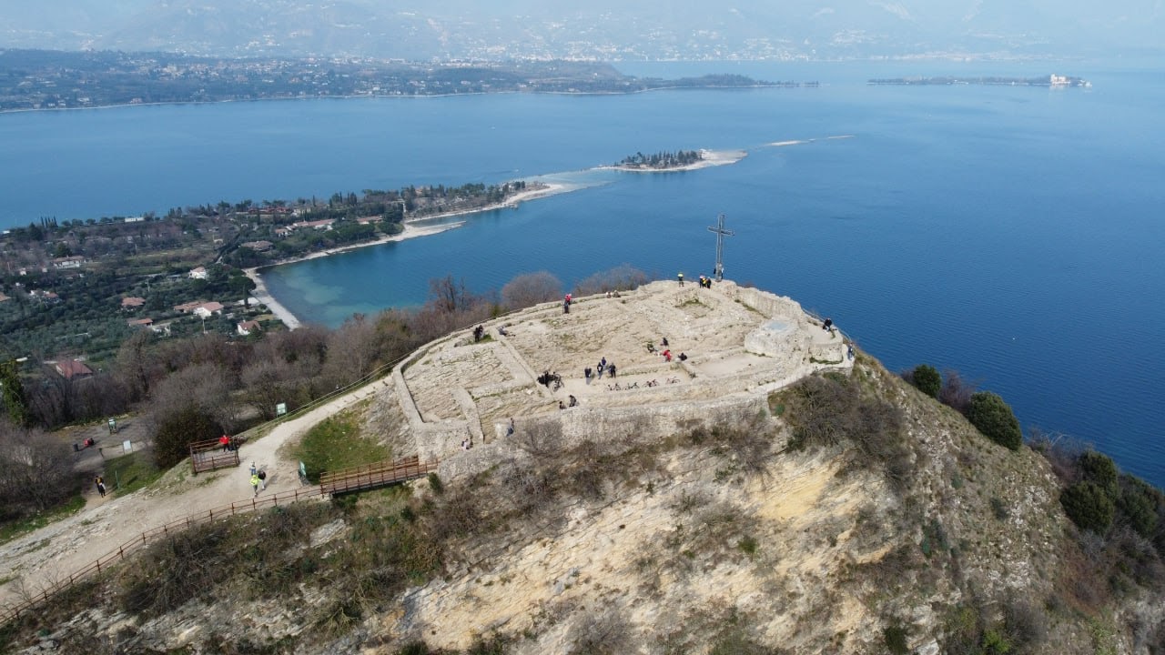 La Rocca di Manerba sorgeva su uno sperone roccioso a picco sul Lago di Garda. Oggi da questo sperone roccioso, primeggia una grossa croce di ferro.