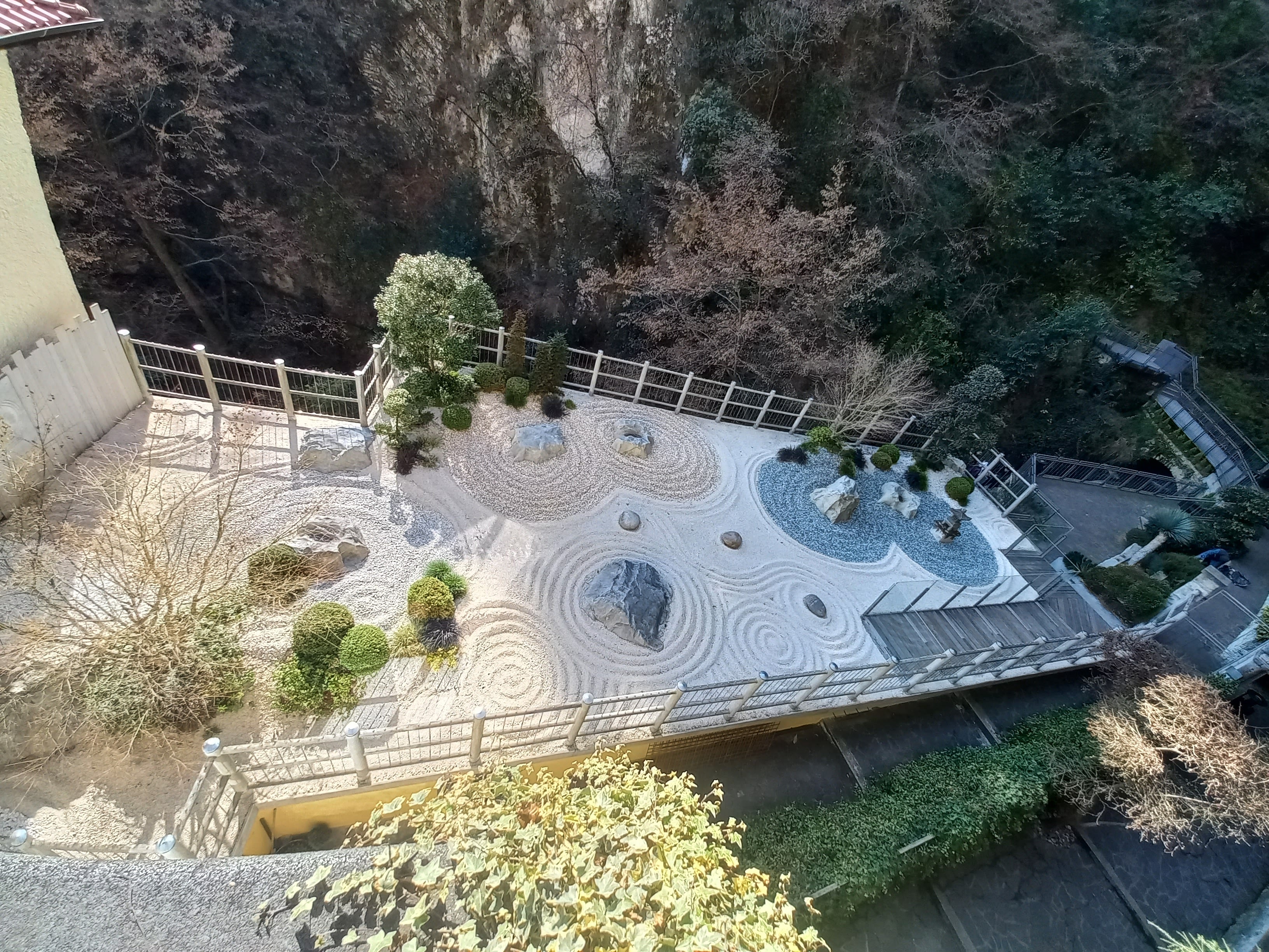A fare da cornice a queste splendide cascate, c’è un bellissimo parco, molto ben curato, con tante varietà di piante e fiori colorati, una musichetta rilassante ci accoglie e ci accompagna per tutto il parco, un bellissimo giardino zen ben visibile dalla terrazzina poco sopra, il sole ci scalda e le cascate ci rinfrescano.