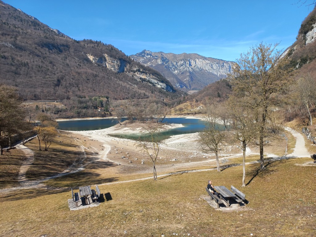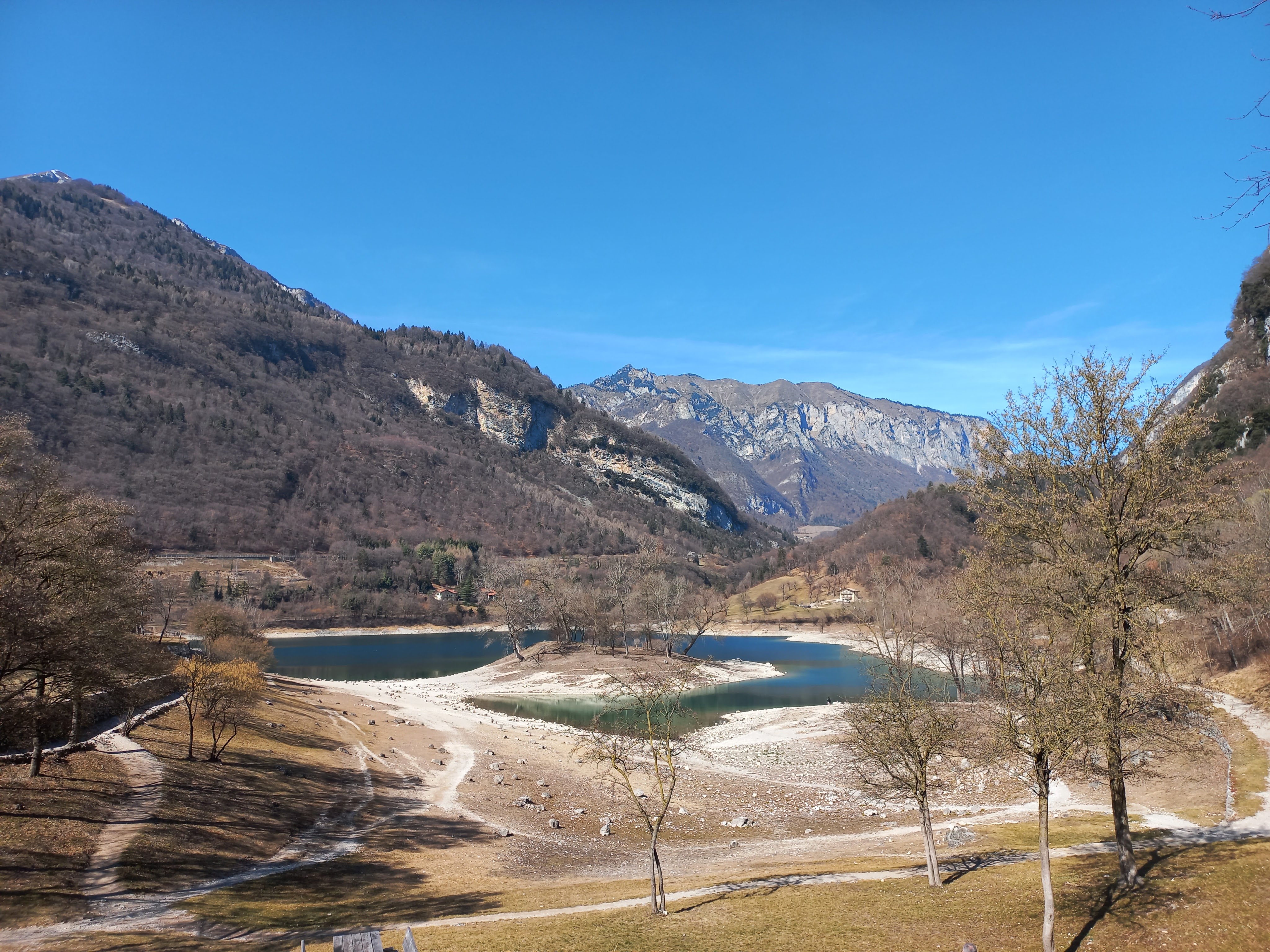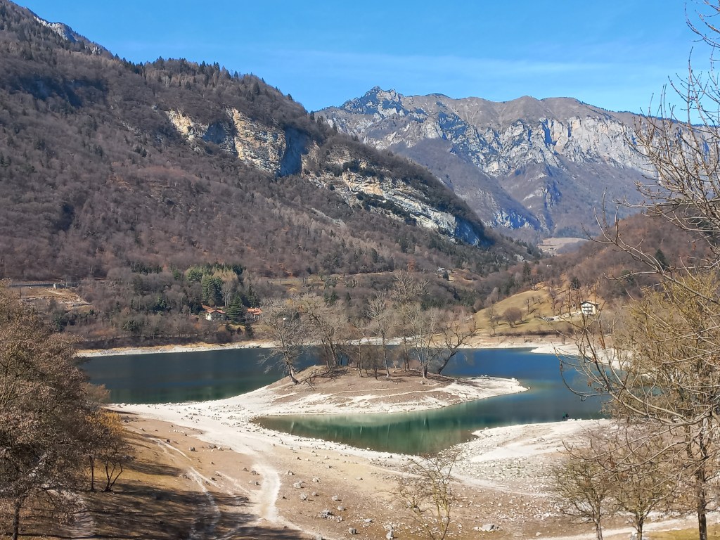 Il lago di Tenno è considerato il lago più pulito di Italia e anche se oggi di acqua non ce n’è tanta (purtroppo la siccità di questo anno, non ha precedenti), posso confermare quanto dicono: grazie alle sue incredibili sfumature di colore azzurro-turchese viene chiamato da alcuni “lago Azzurro”. Solitamente l’isolotto, in inverno, non è raggiungibile a piedi, occorre aspettare l’estate per farlo.