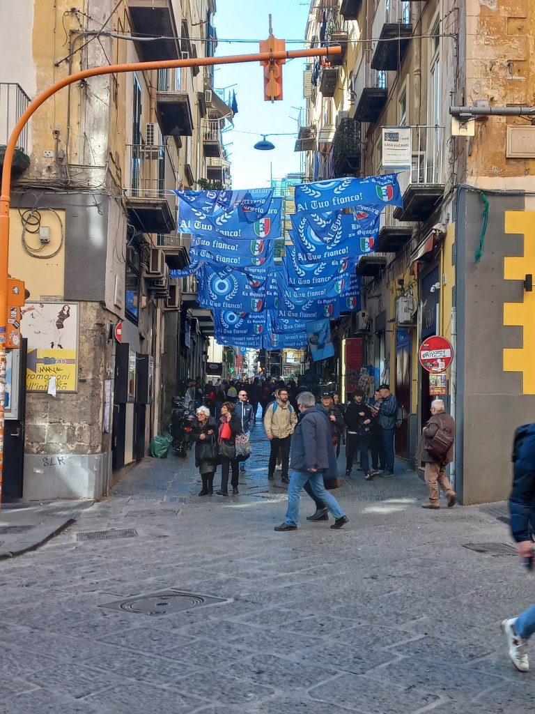 Napoli è solidarietà: dove un passante chiede ad una ragazza che piange in strada se serve aiuto. Napoli è mille colori ma il predominante è l’azzurro della loro squadra del cuore.