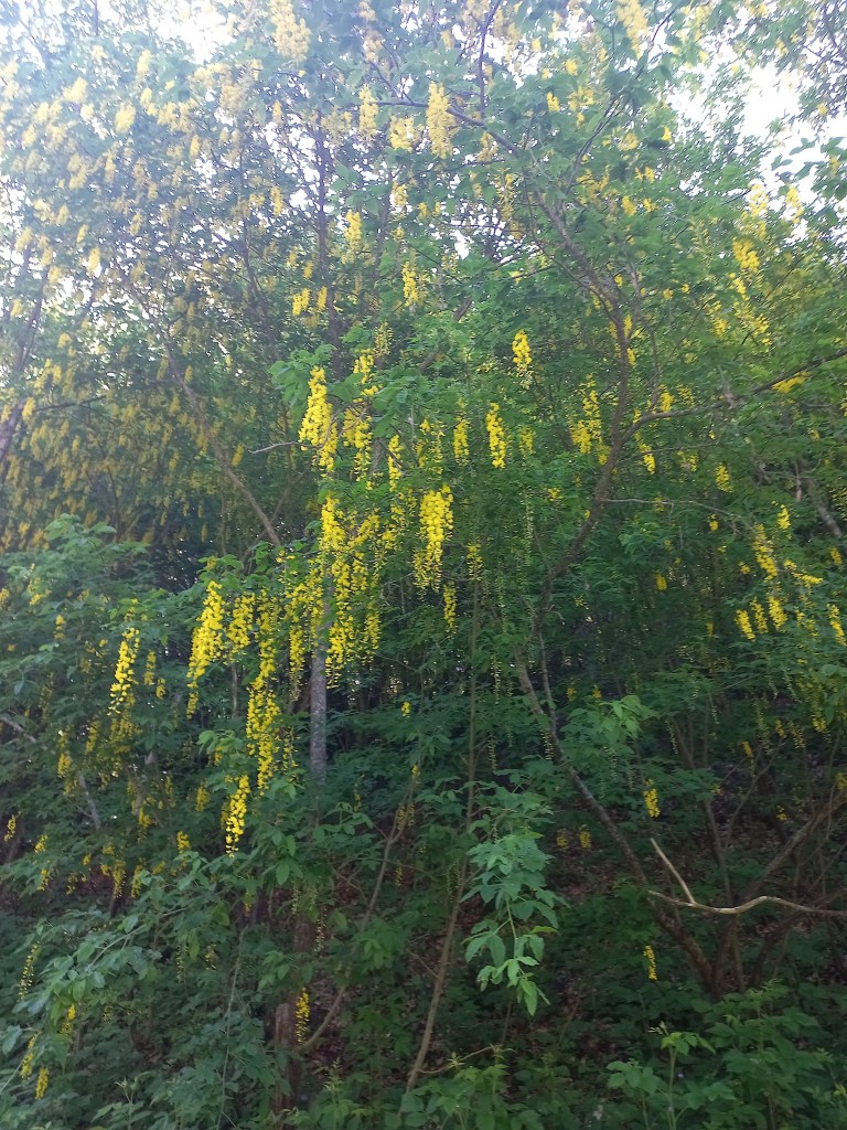 Siamo partiti dal parcheggio percorrendo il largo sterrato contornato da piante di Maggio Ciondolo ancora in fiore e provavo a immaginare che colpo d’occhio dev’essere camminare qui quando le piante sono nel pieno del loro splendore.