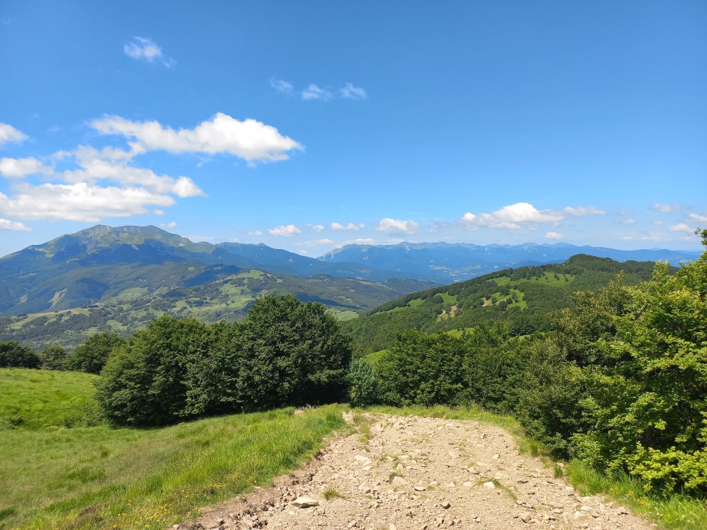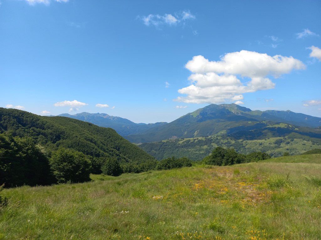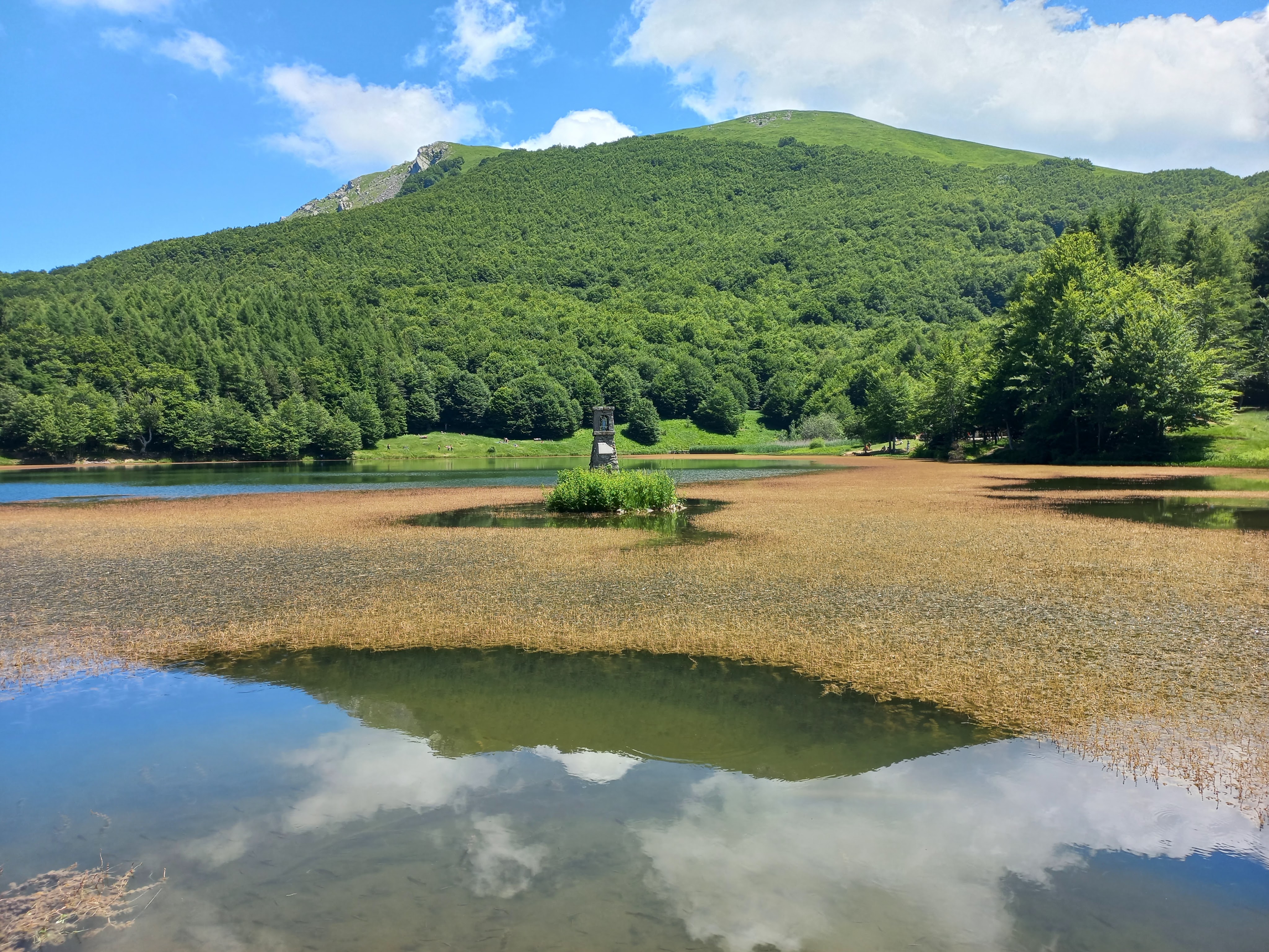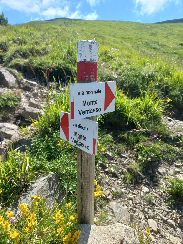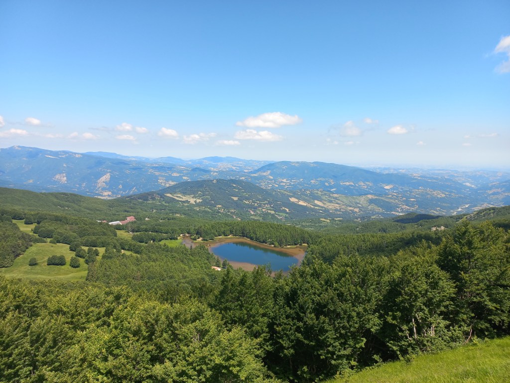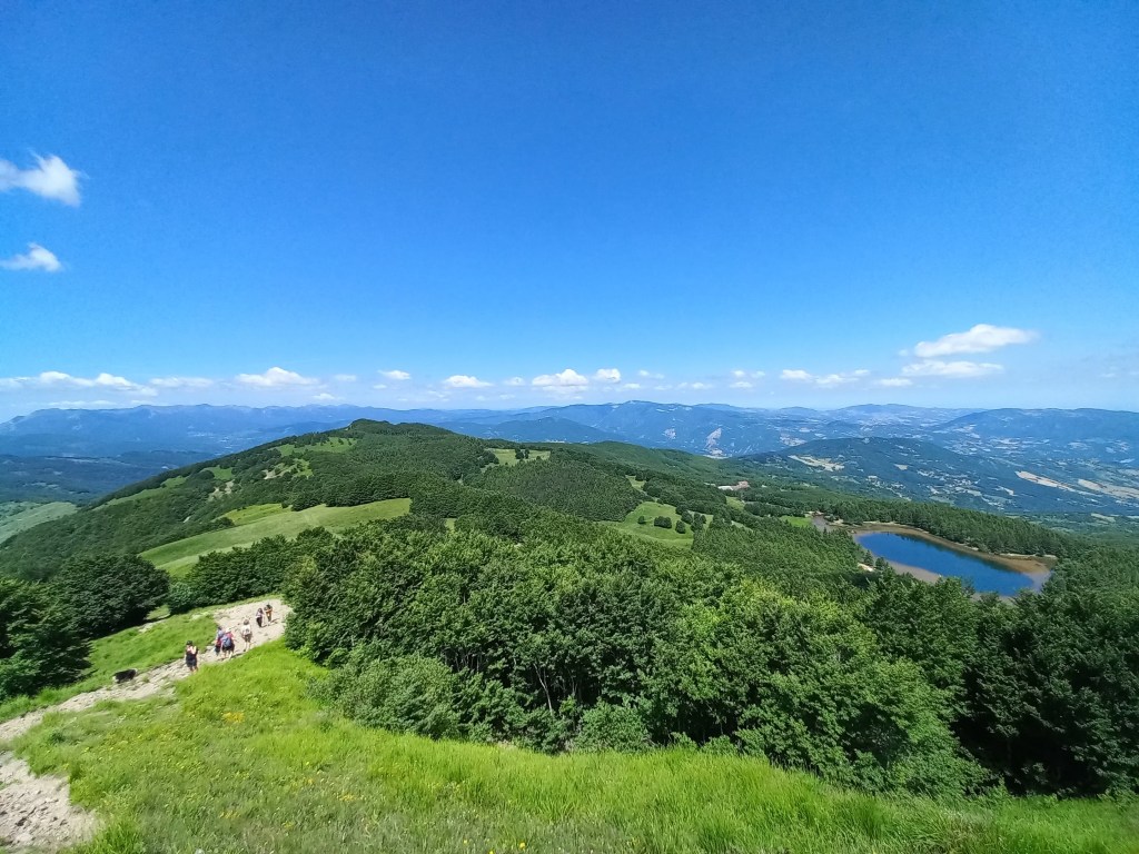 Saliamo dalla direttissima, corta e tosta, ma la fatica e il sudore viene ripagato dal panorama che affaccia sul lago e i monti circostanti, dal Cerreto sino al Monte Sillara, passando dall’ Alpe di Succiso, sconfinando su Cima Canuti, tutto il crinale di Pratospilla e l’occhio finisce sul Sillara.