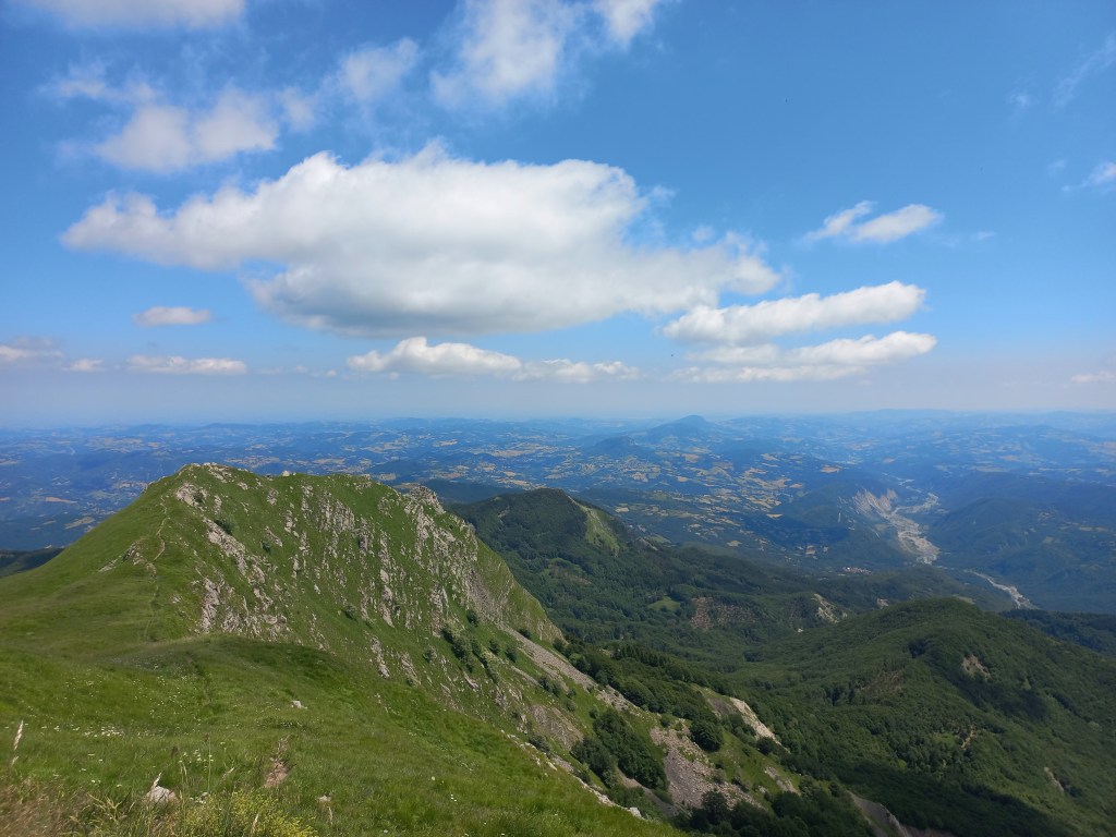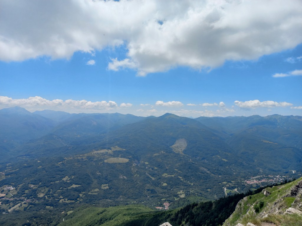 Dalla vetta del Monte Ventasso invece si apre un altro tipo di panorama, simile ma leggermente diverso, tutto l’Appennino reggiano, in lontananza parte dell’ Appennino modenese; si vede la Pietra di Bismantova, il Cusna, il Cisa, Casarola e di nuovo ancora tutto l’Appennino parmense, l’occhio si perde in ogni dove, un leggero vento rende più lieve il pranzo sulla vetta, sotto il sole.