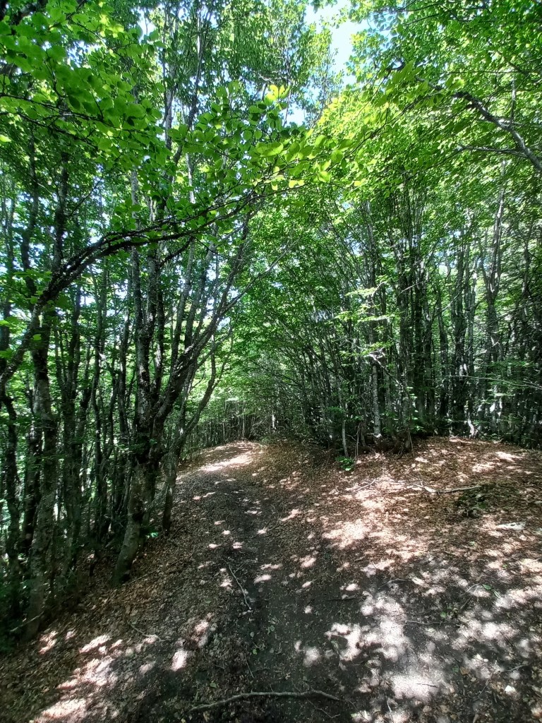 Il sentiero parte sin da subito in salita, però siamo dentro al bosco e l’ombra ci aiuta a sopportare meglio il caldo che oggi si fa proprio sentire.